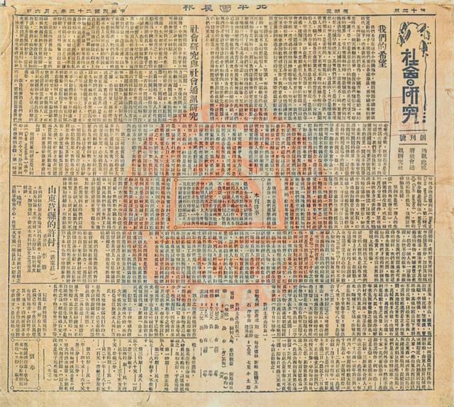 《北平晨报·社会研究》周刊创刊号