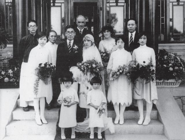 吴文藻与冰心在临湖轩的婚礼合影