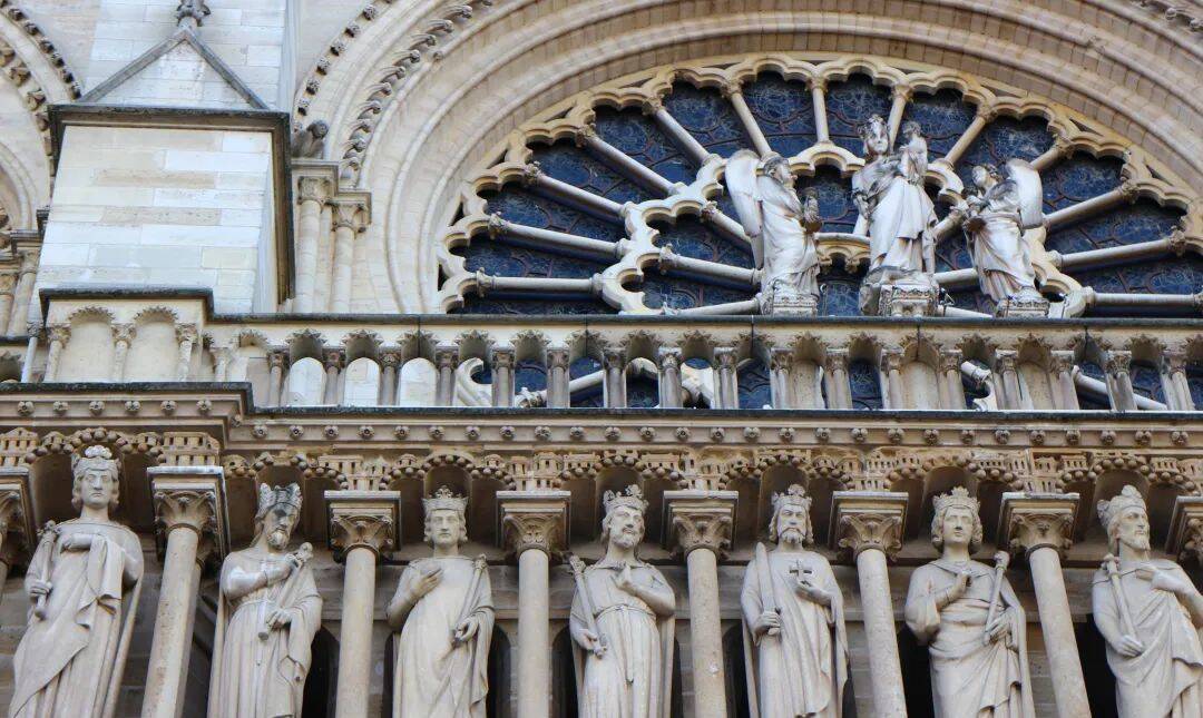 巴黎圣母院的外立面雕塑堪称中世纪哥特式雕塑的杰出典范,属于中世纪盛期到晚期的哥特式艺术风格,强调垂直线条,追求轻盈、灵动和向上的感觉。其众多雕塑分布在教堂的大门、墙壁及塔楼等关键位置,主要以圣经故事、宗教人物及神话传说为蓝本。这些雕塑人物形象生动逼真,面部表情细腻丰富,或庄严肃穆,或温和慈祥,仿佛具有鲜活的生命力。衣物的褶皱等细节被精心雕琢,线条流畅自然,与建筑结构完美融合,既起到了装饰建筑的作用,又增强了建筑的宗教氛围和艺术感染力。
