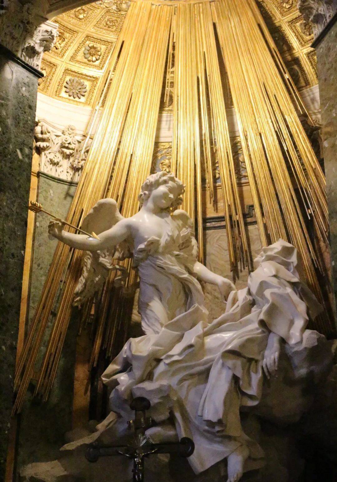 巴洛克雕塑强调戏剧性、动态空间、光影效果和情感表达,使信徒通过艺术感受到神的存在和力量。例如,罗马圣马利亚・德拉・维多利亚圣母堂柯尔纳罗小礼拜堂内,贝尔尼尼创作的《圣特雷莎的狂喜》,通过对人物表情、姿态夸张的塑造,并结合背景,创造了一个宛如舞台上的戏剧场景。