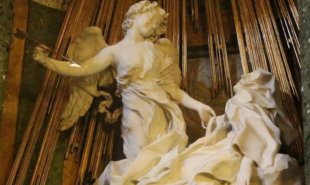 圣女特蕾莎是16世纪西班牙的传奇女性,她将一生奉献给基督教,去世后被封为圣徒。她在自传中描述了自己在神魂超拔(宗教术语)时,见到天使拿着代表上帝之爱的羽箭穿入她的心的神秘体验,“剧烈的痛苦带给我至极的甜蜜” ,这一描述激发了贝尼尼的创作灵感。