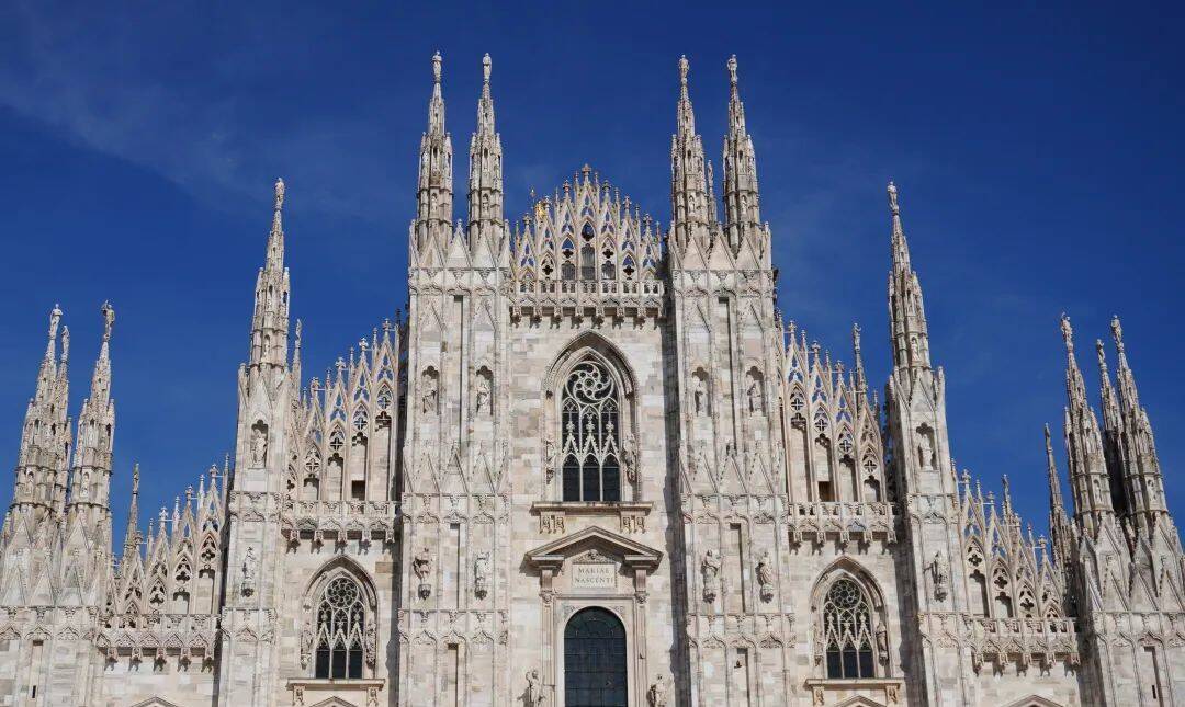 米兰大教堂:哥特式建筑的杰出代表,其外观满布尖塔,135座精雕细琢的尖塔林立,似石笋冲向天际,搭配繁复精美的雕塑装饰,尽显华丽壮观。