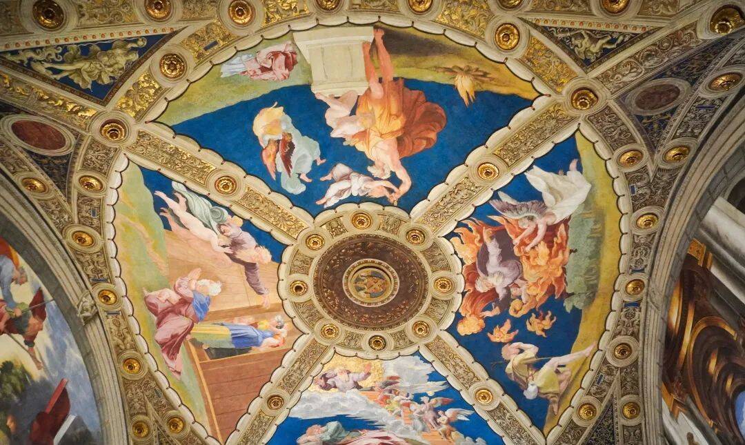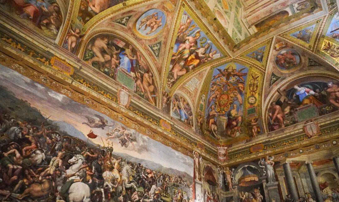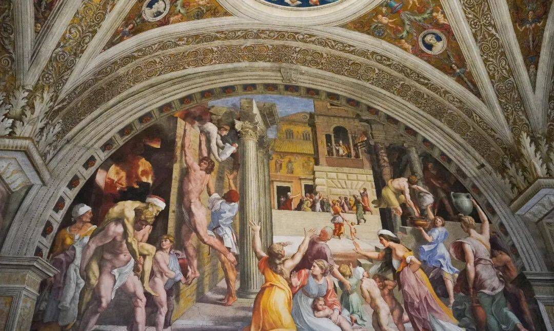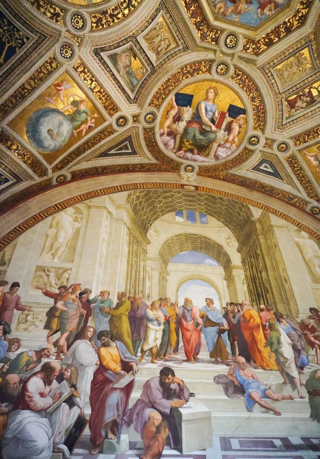 (由于米开朗基罗在梵蒂冈西斯廷礼拜堂创作的《创世纪》和《最后的审判》壁画不能拍照,因此放上同样在梵蒂冈拍摄的“拉斐尔房间”的照片。)